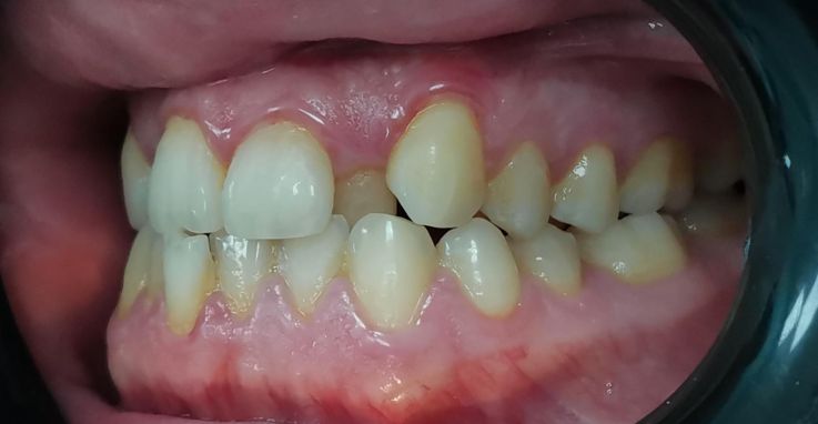 Пациент 26 лет, компенсированный мезиальный прикус. Лечение проводилось на безлигатурной брекет-системе в течение 1 года и 9 месяцев. Обошлись без удаления зубов и ортодонтических микро-импантатов.